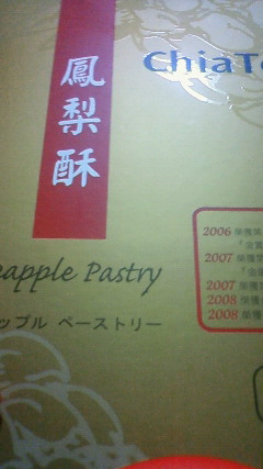 パッケージにはパイナップルケーキって書いてあるんだけど、しっとりクッキーになかがパイナップルジャムが入ってる感じで美味しい!!