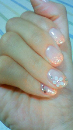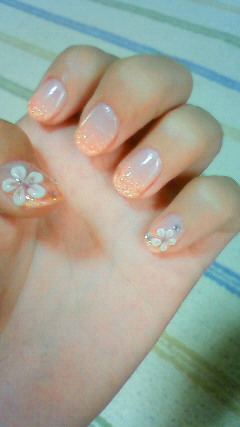 てことで夏らしくラメグラでお花とラインストーンを施していただきました♪