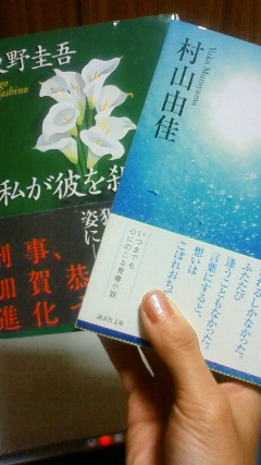 村山由佳の永遠と東野圭吾の私が彼を殺したってゆう小説なんだけどたまには本もいいね。面白かったよ!