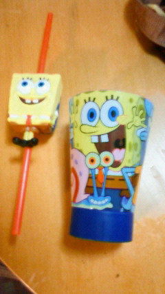 スポンジボブのストローとコップ!両方喋るんです!
